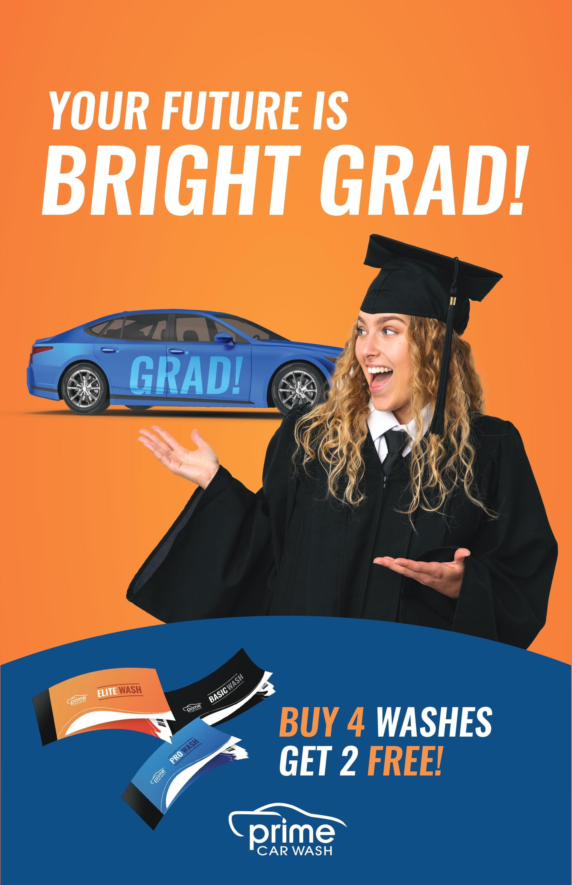 Congratulate your graduate with the gift of Prime Car Wash Wash Books! Help your graduate shine as they embark on their next journey with a sparkling clean car. Our digital wash books make the perfect gift for those starting a new chapter.